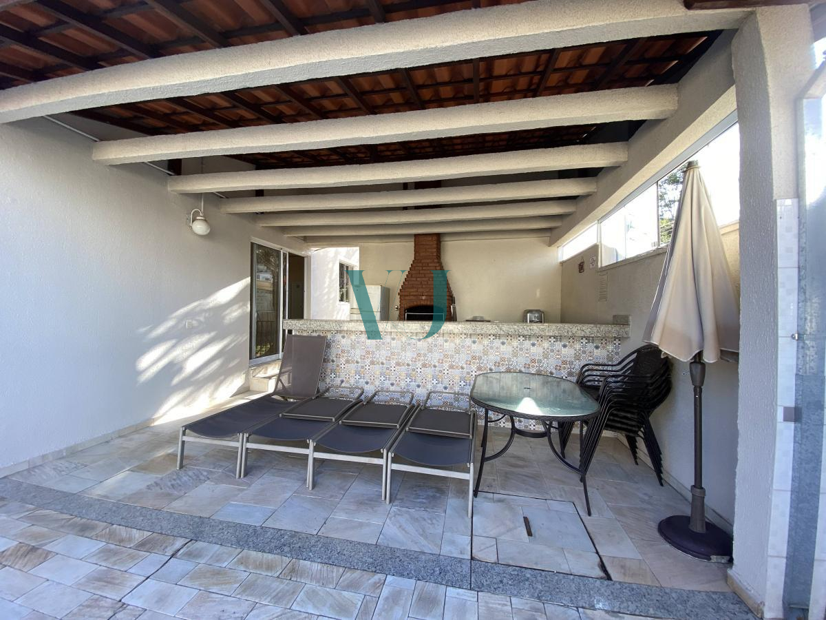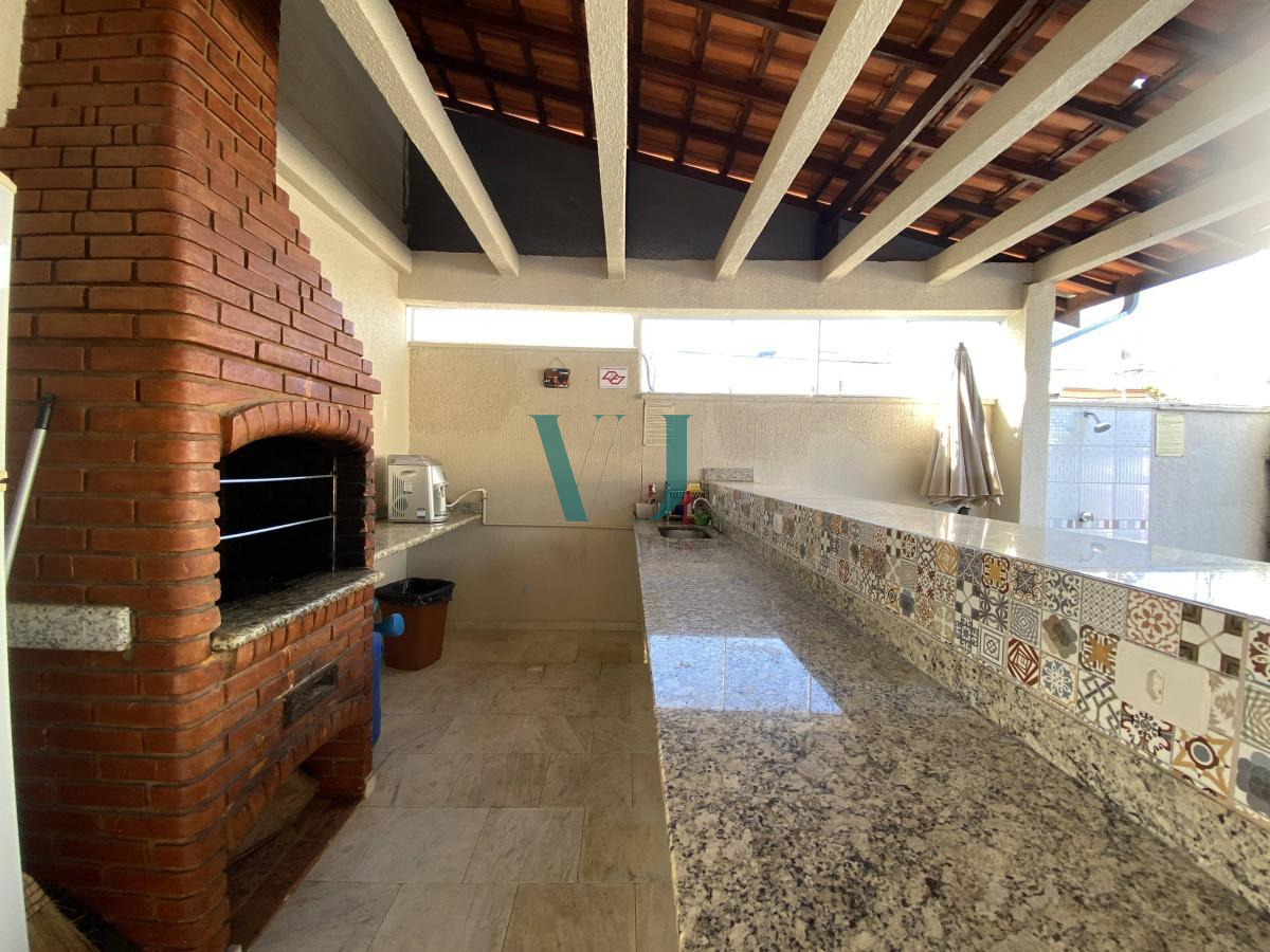 O condomínio oferece lazer completo com piscina, playground, salão de festas e churrasqueira.
